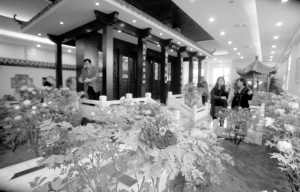 昨日,游客在洛阳国家牡丹园新近落成的牡丹展览馆内观赏盛开的牡丹。