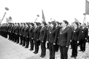 “恨不抗日死,留作今日羞。国破尚如此,我何惜此头!”4月1日上午,在祭奠抗日民族英雄吉鸿昌烈士活动仪式上,扶沟县100名教师代表齐唱吉鸿昌就义歌。据了解,该歌由扶沟县政协干部邢长顺等人以吉鸿昌烈士就义诗为蓝本创作的。晚报记者 金月全 摄 线索提供 丁燕