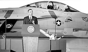 奥巴马当天在首都华盛顿附近安德鲁斯空军基地宣布近海采油新政策(下图),内政部、能源部等部门官员出席仪式。