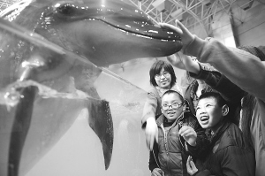 3月31日,患儿在与海豚亲密接触。海豚在患儿头部近距离发出叫声时能对其头部产生强烈的冲击和刺激,进而激活患儿处于“休眠”状态的神经细胞。当日,青岛极地海洋世界“唤醒沉睡的星星”公益康复行动迎来青岛梦圆儿童启智中心首批16名自闭症患儿,他们将在这里接受“海豚医生”为期6个疗程的辅助康复治疗,通过触摸海豚、观看海豚表演、聆听海豚鸣叫等方式改善患儿自身的行动能力,提高语言及沟通能力,“唤醒沉睡的星星”。有关研究表明,海豚所发出的声音通常是2000至10万赫兹等多种波长的高频超声波,这种超声波对自闭症儿童的大脑有激活作用,能起到较好的辅助治疗效果。
