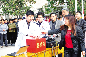 本报讯 在本报报道22岁白血病女孩杨小欢发出呼唤生命支援后,4月7日,郸城县人民医院不仅为杨小欢减免筹集11500元医疗费用,还动员全院医生职工开展捐款活动。