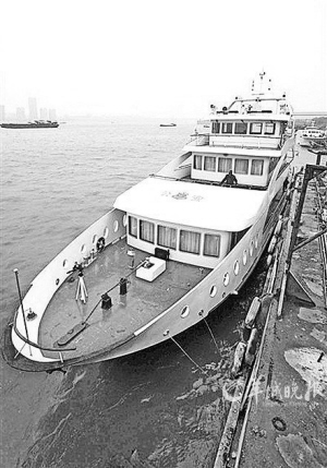 4月8日,武汉产的公安指挥船开往上海,为即将开幕的上海世博会担任安保任务。该船造价2400万元,共有三层,长42米,宽7.6米,航速每小时可达40公里,续航能力达到540公里,指挥船一楼客厅可同时容纳20余人开会,真皮沙发、空调系统、音响系统、液晶显示屏一应俱全。据了解,该船主要承担世博会期间水上反恐任务,还承担接待、保卫任务。 武晨 摄