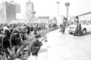 房车联展上,香车美女最吸引人眼球。记者 王映 摄