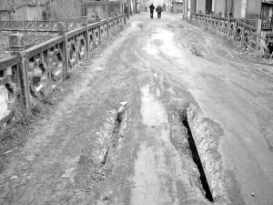 太康县清集乡黄口水闸桥面上的两道裂缝给周边村民出行带来诸多不便。据了解,周边村民要经过这座桥才能到乡里和县城,而桥面上的这两条裂缝已经存在好几年了,一直没有人整修。晚报记者 张洪涛 摄