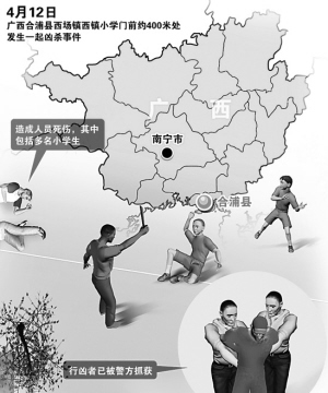广西北海市委宣传部13日上午证实,凶手系一名精神病患者,凶杀事件发生后,北海市委书记王小东闻讯后作出批示,要求迅速采取措施全力救治受伤学生和群众,医院安排最好的医生、使用最好的药物确保受伤人员得到有效救治;认真做好伤亡学生和其他群众亲属的安抚和善后工作;公安机关要依法迅速查清案情;教育部门务必引以为戒,举一反三,检查和加强学生安全保卫工作,确保师生人身安全。