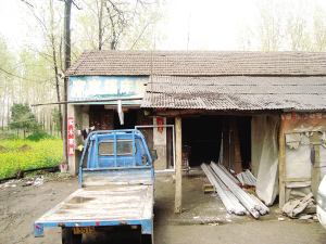 据另一名货车司机反映,收费的是3名青年,他们昼夜轮流在路旁一间门面房内(如图)值班。白天他们在路口摆放一块告示牌,当货车司机交费后,他们才允许移走告示牌,让货车从路口通行。“到了晚上,他们就直接站在路边收费,不交钱谁也不让过!”