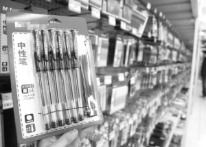 昨天上午,记者在郸城县新华路一超市看到,各式样式的中性笔占了笔类卖区的“半壁江山”,便宜的中性笔一支卖一两块钱,而钢笔区则乏人问津。“现在的学生大多用中性笔,因为中性笔便宜,钢笔吸墨水、涮笔都太麻烦。”超市负责人介绍,他每个月大约卖出4000支中性笔,预计全县各单位、学校每月至少用去中性笔10万多支。