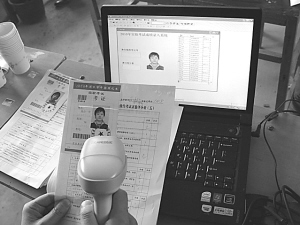 该县教体局负责人介绍,多年来的实验考试,都是采用普通准考证证明学生信息,用普通打印纸制作的准考证上,有照片、姓名、学校、班级、考场、考号等详细的个人信息,准考证都是在考试前一天或考试前几个小时发放给学生。这种做法的弊端是,一些考生有机会钻空子、托关系找到监考老师作弊。今年,该县提前将全县参加实验考试的13000多名学生信息录入电脑,按照电脑分组的方式,将配型的条形码打印在准考证上,取消了准考证上的所有个人信息;在考试时,学生进入考场警戒线以内再发放准考证,即使学生拿到准考证,也不知道自己会分在哪一个考场。考生考试结束,经电子扫描枪扫一下条形码,便根据该名学生的考场、考号,自动将考试成绩录入电脑。