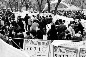 4月17日,济南千佛山公园相亲大会上人流如织。当日,在山东济南千佛山公园内,近5000名青年男女报名参加三月三相亲大会,选择自己的伴侣。