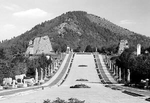 乾陵位于陕西省乾县城北6公里的梁山上,距古城西安76公里,修建于公元684年,历经23年时间工程才基本完工。梁山是一座自然形成的石灰岩质的山峰,三峰耸立,北峰最高,海拔1047.3米,南二峰较低,东西对峙,当时群众称为“奶头山”。从乾陵东边西望,梁山就像一位女性的躯体仰卧大地,北峰为头,南二峰为胸,人们常说它是女皇武则天的绝妙象征。作为世界上唯一一座埋葬了一对夫妻两代帝王的陵墓,它奇迹般地躲过了一场场浩劫,保存着千年前的风姿,卓然于梁山之上。这使得乾陵被渲染上了一层层神秘的色彩。