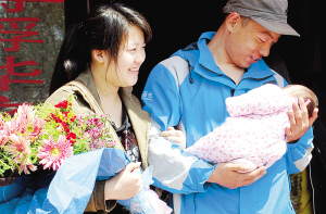 4月23日上午,我市赴玉树地震灾区的3名驴友在经历8天的救援后,圆满完成抗震救灾任务,载誉归来。这是驴友“恐龙”和妻儿团聚的情景。