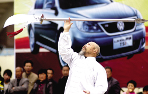 4月25日,山东菏泽一名体育爱好者在全民健身月启动仪式上进行武术表演。
