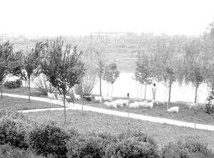 4月25日18时许,记者路过川汇区滨河公园,看到十多只羊在啃草坪。几位散步的市民说,这几天经常看到有人在公园草坪上放羊。晚报记者 张猛 摄