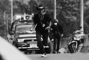 由“红衫军”领导人之一的宽斋·巴那带队,一支“红衫军”在廊曼机场北侧的泰国空军第六飞行大队检查站与戍守士兵发生对峙。