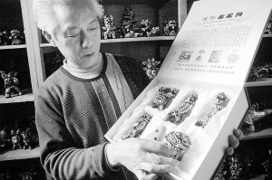 4月28日,中国民间文化杰出传承人许述章在展示参演世博会的泥泥狗。据悉,上海世博会期间,有着“真图腾、活化石”之称的省级非物质文化遗产淮阳泥泥狗将和浚县泥咕咕、开封木板年画等河南省12项非物质文化遗产一同走进世博园,向国内外游客充分展示中原文化的魅力。