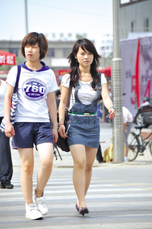 下图:气温骤升,不少市民换上夏天的清凉装。