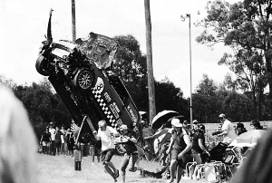 摄影师毛里斯当时就在旁边,他抓拍下了这一惊险事故。他说:“当时一片混乱,人们四散逃命。(马格鲁)在比赛中想超过另一位车手,但两辆车却撞到一起,汽车前轮腾起,越过赛道和轮胎防护墙,离地面约五六米。”