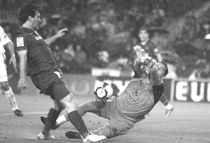 本报综合消息 梅西和巴塞罗那队在无缘欧冠决赛后,正全力向蝉联西甲冠军的目标迈进。梅西昨天又梅开二度,帮助巴萨主场雨中4比1大胜特内里费队,他本人进一步逼近本赛季欧洲金靴奖,巴萨也创下西甲积分新高。