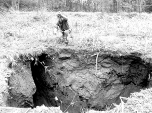 自4月27日凌晨起,四川省宜宾市硐底镇红旗村和石垭村陆续发生岩溶塌陷,目前已形成26个大坑,最大直径约60米。其中有几个大坑靠近农房,部分村民房屋出现裂缝,但没有发生人员伤亡。目前地层比较稳定,没有发生继续垮塌。据宜宾市国土资源局统计,大坑的影响面积约0.6平方公里。