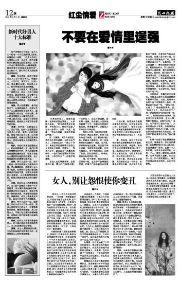 关爱:似乎这一点更适合女人,其实不然。任何一方都需要对方的真心关爱。辛劳一天回到家里,谁也不能只说自己累,而不顾对方的感受。能够主动承担家务的男人,肯定比净等女人侍候的男人受欢迎。