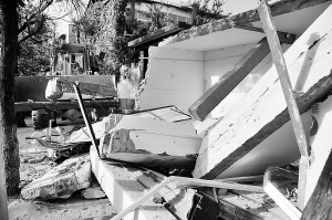 本报讯 5月10日,随着挖掘机发出的轰鸣,横亘在市区常青路人行道上的一间10多个平方的崭新房屋被夷为平地(如图)。当日,市规划监察大队联合市、区城管部门和公安部门,对市区常青路居民占用城市道路建造的房屋进行强制拆除。