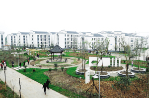 汉旺镇刚刚竣工的汉锡花苑(5月12日摄)。5月12日是汶川地震两周年纪念日,许多绵竹市民前往汉旺,吊唁地震中失去的亲人和朋友。与此同时,江苏省无锡市对口援建汉旺镇的22个项目,也竣工交付使用,一个美丽的新汉旺,已经在地震遗址旁崛起。 新华社记者 陈燮 摄