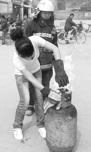 “液化气罐着火时,要先用湿毛巾捂灭火焰,然后拧住开关,再把液化气罐转移到安全地带冷却……”当日9时30分,该县防灾减灾应急疏散演练在罗马广场正式启动,一系列演习项目过后,消防官兵向围观市民讲解演示逃生、灭火器的使用和处置着火液化气罐等相关知识,引来不少市民积极参与体验。“以前,听说液化气罐着火了,会感到十分恐怖,没想到处置起来如此简单。”现场一市民在体验后说,以后遇到这种情况再也不用紧张了。
