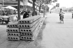 昨天,在市区交通中路北侧的人行道上,10多块楼板被人随意卸在路边,影响城市形象和交通,附近居民希望有人来管管。