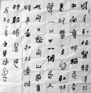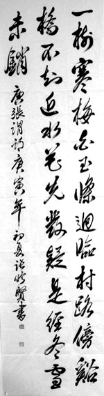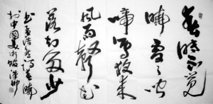 | 孔海明,1966年生于河南省沈丘县。现为中国书法家协会会员。作品曾入展八届国展,首届“黄河杯”全国书画大赛铜奖,纪念孔子诞辰2550周年全国书画大赛获优秀奖;《中国书画报》、《书法导报》、《周口日报》等数十家报刊发表作品百余幅;作品及艺事入编《当代书法家大辞典》、《中国当代楹联墨迹集》等,中南海、中央电视台、黄河书画院等多家博物馆均有收藏。 |
