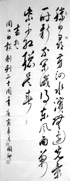 | 刘国礼,1958年生。曾先后参加《当代名人书画作品展》、《盛世国风中国书画展》、《当代著名书法家邀请展》、《全国第六届楹联书法作品展》、《全国第二届草书艺术大赛》等大赛并多次获奖。书法作品散见于《中国书画报》、《书法报》、《书法导报》、《河南日报》等报刊上。现为中国书画艺术研究会常务理事、河南省书法家协会会员、周口职业技术学院副教授。 |