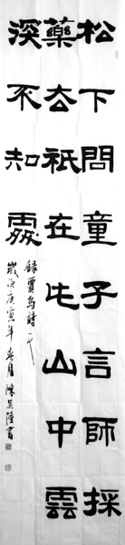 | 陈吴陆,一九八一生于河南省郸城县。现为河南省书法家协会会员,河南省诗词学会会员。作品多次参加省内外各类展出并获奖,《书法导报》、《中国国土资源报》、《当代名家书画系列丛书》、《中华诗词书画年鉴》等均曾刊登。 |