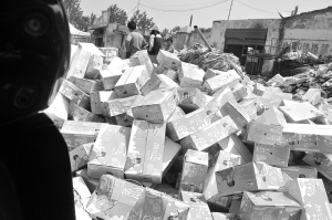 昨天下午,接到记者反映,市开发区工商分局工作人员很是惊讶,并说这种做法不妥,过期奶制品要专门集中销毁,不能当废品来卖,更不能随意乱丢。他表示,会立即派人去现场查看。