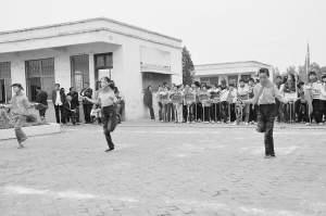 ↑5月22日,郸城某小学的学生在比赛跳绳。“六一”临近,郸城县组织全县7所小学500余名师生举行了迎“六一”广播体操、跳绳、拔河等比赛。