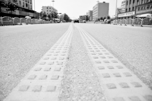 本报讯 昨日,在周口市区七一路上,交警部门使用新材料划出了我市第一条带有振感功能的双黄线。