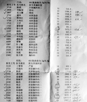 突如其来的“回扣清单”,让院方深感意外。宁波一院负责人在接受记者采访时表示,在得知这一情况后,院方和宁波市卫生局迅速介入调查。初步认定,这张清单上列出的医生确系该院医生,在宁波市第一医院使用的药品中也的确有这种药品。根据清单上的用药量,院方估计是今年某一个月的用量。