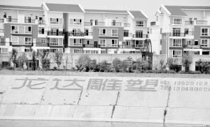 下图:昨天,在沙颍河中州路大桥北侧的河堤上,记者看到一片红色的大字广告很是显眼,与前面的沙颍河和背后的景色很不和谐。