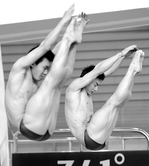 本报综合消息 昨天,2010跳水世界杯在常州奥体中心新城游泳跳水馆进行,在男子双人3米板决赛中,中国组合秦凯/罗玉通以总分460.62分毫无悬念地夺得冠军,实现中国队在世界杯这个项目上的八连冠,同时也是本次比赛中国队的首枚金牌。(楮秋)