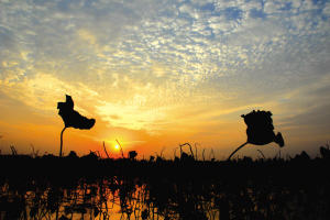淮阳万亩龙湖处处充满着文化艺术的绮丽美景,浪影粼粼,微波荡漾,蒲荷连天,水鸟欢唱,被摄影界誉为“中国北方最美的湿地”。一片湖水温润神奇,如梦如幻。那清晨湖面的一抹红霞,那星星点点的船儿荡在青蒲红荷之中,是如此灵动神奇,令人心动向往。不知有多少摄影人不辞劳苦、不远万里来到这里摄猎龙湖美景。而在淮阳工作的张建梁则近水楼台先得月,将龙湖景色、蒲苇荷韵别样的美丽呈现出来,让人们真正领略到淮阳龙湖的神韵和瑰丽。