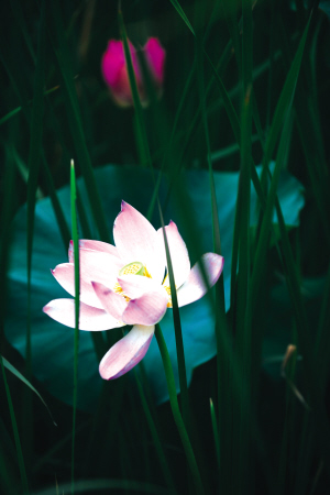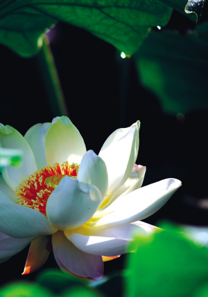 红荷,小令。白荷,绝句。一阵唐朝的风,吹皱了韵律。