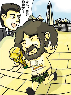 虽然蓄起了胡子,看着成熟了许多,但是马拉多纳说起话来还是那么不靠谱。前不久他就表示,如果能够率领阿根廷队世界杯夺冠,那么他就会在阿根廷标志性建筑方尖碑下裸奔。更让人难以置信的是,一干球员也拍老大的马屁,“到时候我们也一起跟着脱!”
