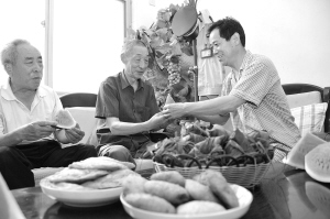 昨天是端午节,川汇区文明社区的居民代表赶到七一路派出所民警张继玺家,慰问这位病倒在工作岗位上的老民警。晚报记者 朱海龙摄