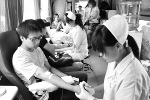 市中心血站血源科负责人李中森介绍,从1998年10月1日至今,我市累计已有20多万人次无偿献血,献血两次以上者占献血总人数的60%还多,累计献血量超过4000毫升的“献血大王”有277人。1998年至2007年,我市每年临床用血量都在6吨左右,全部由无偿献血者“供应”,我市也是卫生部、中国红十字总会表彰的第一批“全国无偿献血先进城市”之一。今年以来,我市献血人数达到1.7万人,日常的用血量达到3.4万单位,其中固定献血者达到70%。现在由于新农合的病号逐年增多,导致临床用血量大增,去年的用血量达到14吨,预计今年的用血量可达到15吨左右。