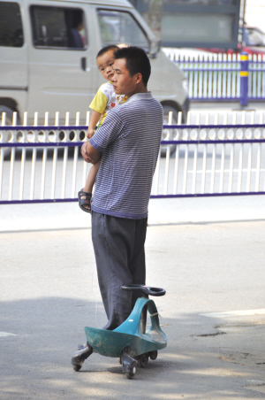 昨天,记者在周口市区街头抓拍到了两张关于父亲侧影的照片:一位父亲为拍摄到孩子最美的瞬间,一直努力地逗着孩子(右图)。另一位父亲则脚边放着一辆儿童玩具车,抱着孩子站在树荫下乘凉(左图)。当天是父亲节,这些父子情深的温暖一刻,在镜头中显得特别的意味深长,父爱,原来是如此的深厚。 晚报记者 朱海龙 摄