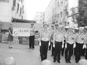 6月22日,广州白云山和记黄埔中药有限公司驻周办全体成员代表公司,向周口交警表示暑期慰问,并送去口炎清颗粒、凉茶等物品。