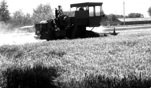 “夜来南风起,小麦覆陇黄。”被干热风狂吻过的田野,像金色的海洋。各式大型收割机在麦浪里水怪般地翻滚吞吐,奏着低沉而有力的丰收之歌。