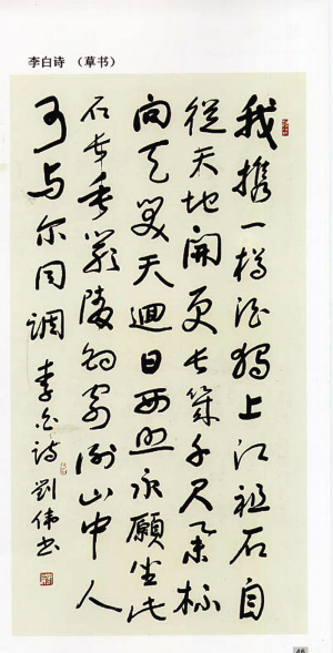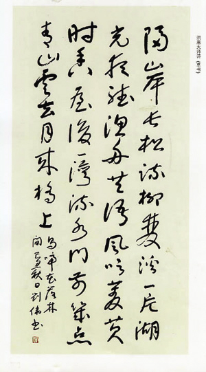 刘伟,1952年生于淮阳,系中国文化艺术交流协会名誉主席,中国当代书画艺术研究会副会长,河南工程学院特聘教授,河南中金书画院院长,中原书画院艺术顾问,龙都书画院和淮阳书画院名誉院长。他擅长写隶书、魏碑、行草,尤其是在研究于右任标准草书方面取得了显著成绩。近年来,他多次参加国内外大型展览活动,在日本及我国台湾、香港等地颇有一定影响。他先后入选《中国十大书法家》、《中国书画领军人物》、《走向世界的艺术大家》等20多部经典图书,中国中外名人文化研究会等单位命名他为“中华书画大师”、“人民功勋艺术家”。