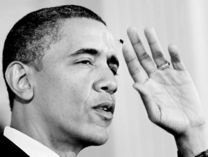 报道称,22日,奥巴马在白宫东厅就医改问题发表演讲。演讲中,一只恼人的苍蝇不停地在奥巴马脸旁徘徊,它甚至一度还停在总统的上嘴唇“歇脚”。平日里指点江山的总统面对这一状况也顾不上保持形象,数度中断演讲用手驱赶萦绕耳边的苍蝇。