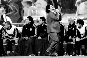 当然,幸福,只持续了一半时间。下半场墨西哥人的疯狂反扑,让老马暴露出稚嫩的一面。换下特维斯,连续换上贝隆、古铁雷斯和帕斯托尔,老马的保守跃然场上。即便如马拉多纳这样的进攻狂人,面对胜利的诱惑,功利也是唯一的选择。最后30分钟,紧张、不安和急躁占据了老马的表情,墨西哥人让马拉多纳感受到了什么是紧张。