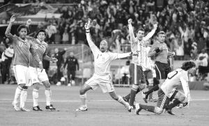 3比1,一场预料中的胜利,但阿根廷人的幸运,不用怀疑。冲进场内,马拉多纳的拥抱比之前几场收敛了许多。甚至,当特维斯给老马一个热烈亲吻时,球王的表情还有些愕然。心不在焉,还是心有余悸?没人清楚。要知道,如果在以往,老马肯定会给“野兽”一个更热烈的反应。(徐东海)