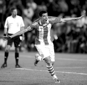 本报综合消息 北京时间昨夜,在南非世界杯1/8决赛的一场交锋中,巴拉圭和日本在比勒陀利亚的洛夫特斯球场狭路相逢。120分钟比赛时间里,双方战成0比0平,把比赛拖到了北京时间今天凌晨。最后的点球决战中,日本队员驹野友一射失点球,巴拉圭5比3淘汰日本,历史性首次打进8强。这是继巴西、阿根廷和乌拉圭之后的第4支晋级8强的南美球队。继而,来自南美洲的球队占据了本届世界杯8强的半壁江山。随着日本队的出局,来自亚洲的球队全军覆没。